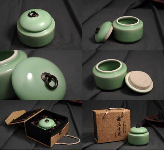 暗香茶叶罐 弟窑 梅子青釉 规格 直径*高: 9.8*9.5cm; 容量 60g 产品介绍 安全 龙泉青瓷因一直沿袭古法烧制工艺,绝不含铅铬等重金属,使用安全