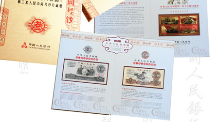 内含精美纪念金箔1枚,粮布票6张,第三套人民币