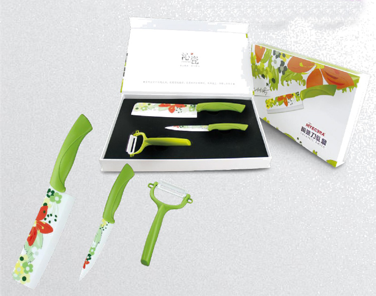产品描述:G11 柄6.5 寸贴花菜刀+G11 柄4寸贴花水果刀+陶瓷削皮器HP2