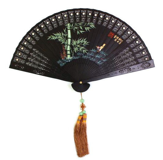 乌木、紫檀扇的原料主产地是中国四川和印度,木质细腻。其主要制作工艺为拉花、烫花、镶嵌、彩绘等,工艺精细、高雅。经过精心设计的镂空和彩绘图案使乌木、紫檀扇的工艺性与实用性结合,成为馈赠亲友,永久珍藏的佳品。