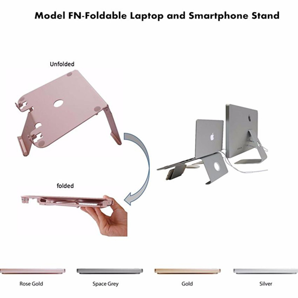 人体工学支架,6系铝材,氧化喷砂,优化散热 专为苹果笔记本电脑四色配套 折叠后仅为2厘米厚度,方便携带,适合中高端商务,移动办公人群
