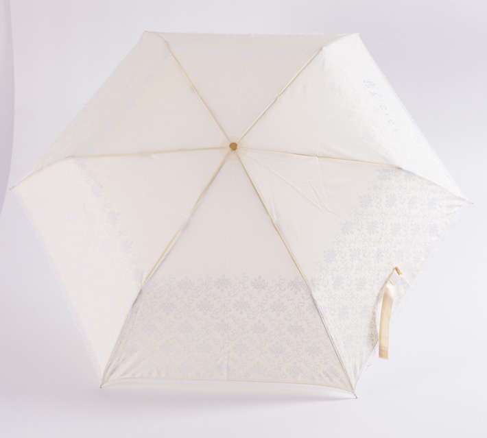 此伞采用三折铅笔伞伞架。伞骨烤漆钢骨,中棒镀镍,防风设计。压片式安全开关,配包皮铝合金小弯柄。伞面采用高密防水碰击布,独特蕾丝花边设计,伞面丝网满版印刷。伞型整洁,伞面漂亮,此伞适用于女性,适用于化妆品、房地产、汽车、食品、饮料、服装、餐饮等大型企业用于广告促销、商务馈赠、展销会、节日庆祝、周年庆典等场合