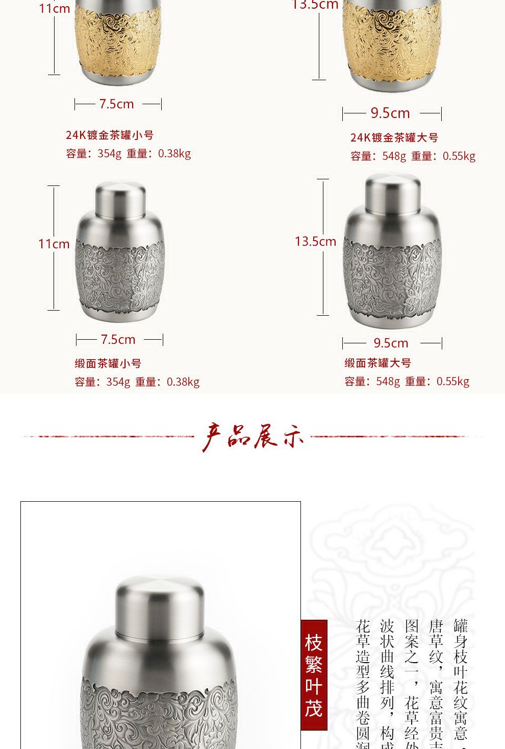 | 24K镀金茶罐大号 | 高13.5cm 直径9.5cm | 548g | 0.55kg | ¥3,688.00 |